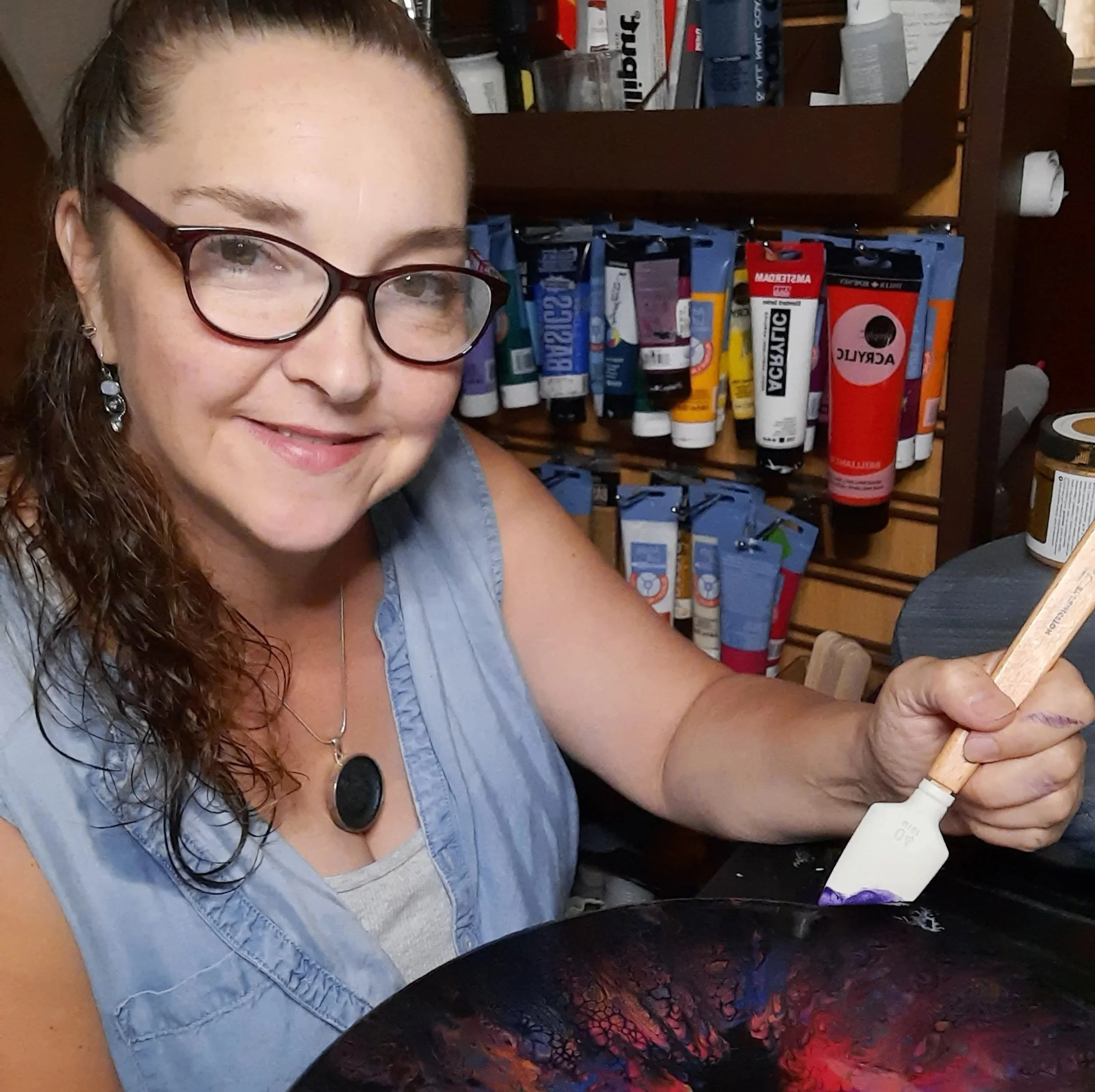 She encourages students to experiment, trust the process, and find joy in color, texture, and personal expression.
